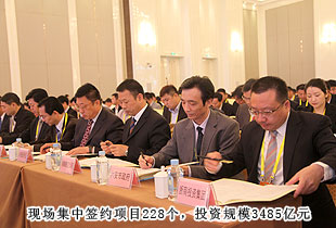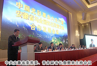 中共安徽省委常委、常务副省长詹夏来主持会议。与会人员观看了六安革命老区专题片,全国工商联副主席、中国光彩事业促进会副会长谢经荣将捐赠给金寨县职业学校的2000万元支票交到了市委常委、金寨县委书记潘东旭手中,副省长杨振超向谢经荣赠送牌匾。同时,会上还举行了投资项目集中签约。