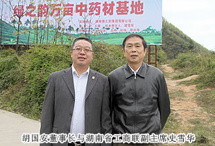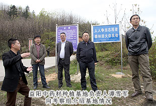 2013年4月13日,为深入了解湖南省“万企联村•共同发展”30个省级优秀示范项目之一的——绿之韵益阳安化万亩中药材种植基地建设情况,湖南省工商联副主席史雪华、湖南省工商联扶贫处处长甘露、会员处处长谢明亮、副处长张耿、中共湖南省委统战部经济处副处长周桂忠一行赴绿之韵安化万亩中药材基地实地考察。中共安化县委常委、政法委书记罗必胜,安化县冷市镇镇长周华山,湖南省政协委员、省工商联常委、长沙市工商联副主席胡国安陪同考察。