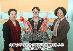 2013年3月24日,内蒙古呼和浩特回民区通道街回族小学校长马红霞一行带着全校师生的浓浓感恩之情,来到安博官网总部,赠予安博官网一面“滋兰九畹,树蕙百亩”的锦旗及“鱼跃龙门”纯手工艺品,并聘请安博官网胡国安董事长担任该校荣誉校长。