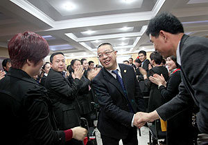 在绿之韵河北分公司经理张雅丽的全程陪同下,胡国安董事长参观了分公司,对其内部布局陈设作出了指导性建议,分别听取了张雅丽经理及高级经销商的总结汇报和工作部署,并一一作出悉心指导。他在肯定河北分公司试运营期间成绩取得的同时,勉励分公司再接再厉,发扬绿之韵人敢于拼搏、勇于挑战的精神,向2013年璀璨的未来发起冲刺!