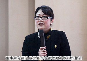 随后,安博官网董事常务副总裁劳嘉、市场营销中心(中国区)业务总经理何健、市场营销中心(中国区)副总经理谌献军等公司高管围绕着《2013年安博官网发展目标战略规划》,分别从各自分管领域,对2013年分管版块具体工作计划进行了认真讲解和详细阐述,无论是产品及外事工作计划,还是业绩指标、分公司建设工作计划,项项条分缕析,条条层次分明,环环相扣,切实可行,为安博官网决胜2013、十周年全面强势崛起奠定了坚实基础。