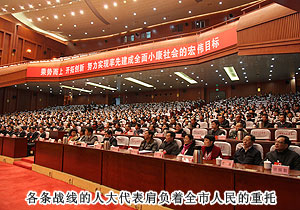 湖南省委常委、市委书记陈润儿在会上讲话。他说,过去的五年,我们在省委、政府的坚强领导下,团结实干,开拓进取,砥砺奋进,克难前行,成为长沙历史上经济社会发展最快、城乡面貌变化最大、人民群众受益最多的时期之一。这些成绩的取得,凝聚着各级人大和“一府两院”的智慧与力量,饱含着各位代表和全市人民的辛劳与汗水。过去五年,长沙经济总量连超五个城市,列省会城市第七位;城市综合实力增速明显加快,列全球城市第四位,取得了“十强十快”的历史性跨越。对此,我们可以自豪,但不能自满。必须看到,这只是长沙发展进程中的一小步,今后要走的路还很漫长,面对的竞争仍然激烈。我们必须自加压力、负重奋进,找高手下棋、与强者比拼,跨入大中城市一方阵,挺进省会城市前五强。实现这一目标,有困难、有挑战,但更有信心、大有希望。我们有坚实的基础,有良好的条件,有难得的机遇,我们要把坚实基础、良好条件和难得机遇,转化为率先发展、争先进位的竞争优势,乘势而上写新篇,力争跨入前五强。
