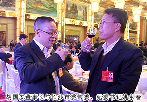 2012年12月30日,长沙市第十四届人民代表大会第一次会议在长沙人民会堂隆重开幕,来自全市各条战线的人大代表肩负着全市人民的信任和重托,满怀豪情汇聚一堂,共商长沙发展大计,共绘长沙美好明天。大会主席团执行主席陈润儿、张剑飞、张值恒、张迎龙、余合泉、袁观清、刘晓明、罗购三、刘新程、张建国、王国海、赵建强、黄佳惠、谭杭生、芮英姿、柳美景在主席台前排就座。安博官网胡国安董事长当选长沙市十四届人大代表,积极呼吁实业强国;绿之韵国际集团(东南亚)股份有限公司总经理张晓琴当选长沙市第十一届政协委员出席会议。