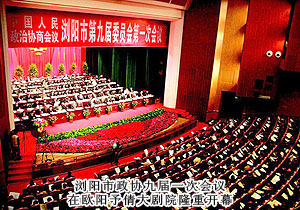 2012年11月24日,政协浏阳市第九届委员会第一次会议在欧阳予倩大剧院隆重开幕。新一届市政协委员聚集一堂,围绕促进浏阳科学发展、跨越发展积极建言献策,认真履行政治协商、民主监督、参政议政的职能。