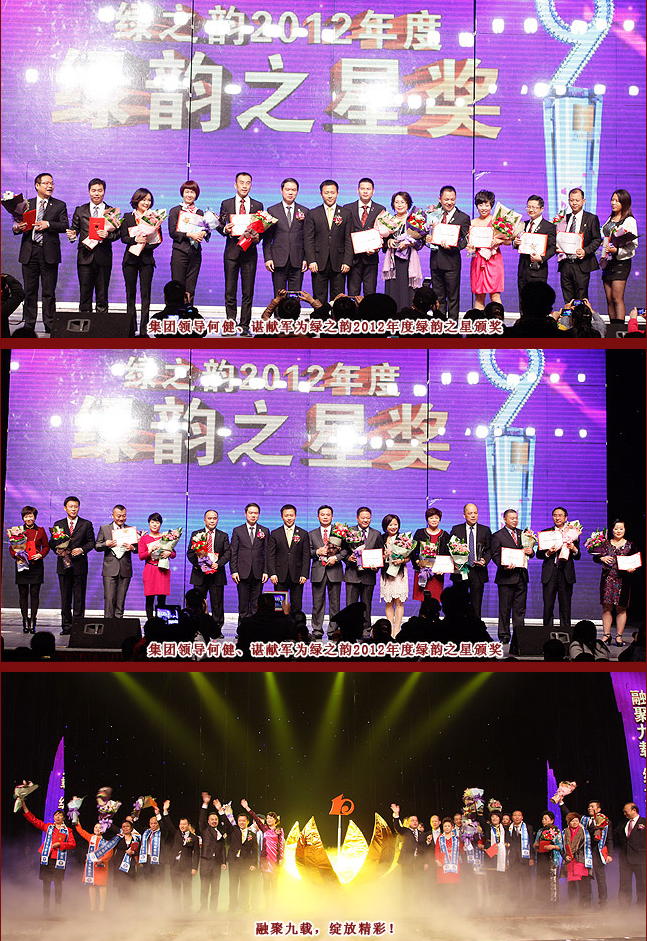 激情、鼓舞、精彩,气势磅礴的绿之韵九周年盛典圆满落幕,给所有来宾留下了难忘的印象,绿之韵人的团结、创新、责任、理想、大气,再次彰显民族企业无与伦比的魅力。融聚九载,绽放精彩,决胜2013,绿之韵人同舟共济!
