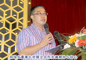 2012年8月8日上午,安博官网与湖南日报报业集团《大众卫生报》战略合作签约仪式在长沙新闻大酒店成功举办,开启了湖南省保健食品龙头企业绿之韵与全民健康公信平台合作战略的新格局。湖南日报报业集团党组书记、社长覃晓光,湖南日报报业集团党组副书记、总编辑董岳林,湖南日报报业集团党组成员、常务副总编辑马宁,湖南日报报业集团副总经理兼大众卫生报社社长徐勇及《大众卫生报》全体员工见证签约。安博官网董事长胡国安、董事常务副总裁劳嘉、企划新闻副总监李经成等集团高管及张建军、黄翔、张新等近二十名绿之韵优秀经销商代表共同出席。