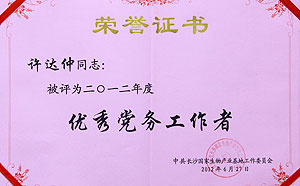 2012年6月29日,在中国共产党成立91周年到来之际,长沙国家生物产业基地党工委在园区召开了先进基层党组织、优秀党务工作者表彰大会。会上,绿之韵党支部凭借一系列争先创优的党建工作荣获“先进基层党组织”荣誉称号,绿之韵党支部书记许达仲、党支部成员罗婷分获“优秀党务工作者”、“优秀共产党员”称号。