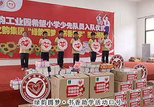 “我有一个梦想,在一个书香四溢的房间,伴着文字自由的起舞;我有一个梦想,能够每时每刻,在知识的海洋里遨游;我有一个梦想,能够与同学们在一起,阅读着喜欢的书快乐地成长……”这是绿之韵工业园希望小学五年级二班一个孩子的梦想。2012年5月30日,在“六一”儿童节即将到来之际,带着为孩子们圆梦的使命,绿之韵慈善基金、绿之韵党支部带领爱心志愿者来到绿之韵工业园希望小学,开展“绿韵圆梦•书香助学”流动图书馆捐赠爱心活动,绿之韵首家校园爱心“流动图书馆”正式成立!