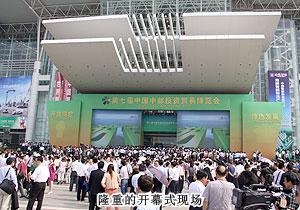 上午9点15分,中共中央政治局委员、国务院副总理王岐山宣布第七届中博会开幕。中部六省省长共同启动中博会按钮。本届中博会围绕“开放崛起,绿色发展”的主题,突出绿色产业、新能源和节能环保的理念,重点展示在节能环保领域的新产品和最新技术,以实体展和网络展两种方式进行,共设实体展区44个。