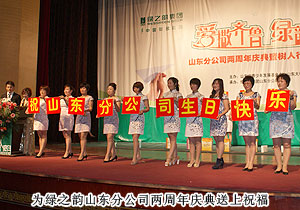 2012年5月16日,绿之韵山东分公司“爱撒齐鲁,绿韵山东”两周年庆典暨“树人行动”爱心捐助活动在济南梨园大戏院隆重举行。安博官网执行总经理龚振、副总经理何健,华东区域业务总监梅其慧、业务经理谭红,山东分公司副经理孙自智以及巩春华、张美华、范桂春、张吉庆、谭佃选、申文高、马光禄、朱建昌、臧延福、徐继法、高玉霞、李家勇、曹颖、刘玉荣、陈培英等优秀经销商出席。数百名绿之韵伙伴共同分享山东分公司不断发展、走向成功的喜悦,展望山东绿之韵事业的美好未来。