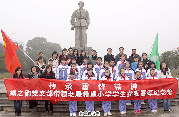 阳春三月,是向雷锋同志学习的日子。为更好地将雷锋精神发扬光大,2012年3月19日,绿之韵党支部带领绿之韵老屋希望小学学生参观了位于望城县雷锋镇的湖南雷锋纪念馆,与孩子们共同了解雷锋、走近雷锋、学习雷锋,争做雷锋精神传人。绿之韵国际大酒店贵宾楼执行总经理刁琳、安博官网党支部书记许达仲参加了此次活动。