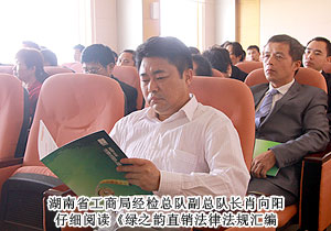 学习的过程中,安博官网总裁助理兼企划教育总监何健就公司目前所展开的直销法律法规学习研讨会进行了介绍,并对湖南省工商部门一直以来“送法上门”的学习方式表示由衷的感谢。随后,湖南省工商局经检总队副总队长肖向阳主持展开两个《条例》学习专题讲座,首先讲述了两个《条例》立法的意义,表明了政府打击传销的态度,并对安博官网及营销人员一直以来配合国家两个《条例》,规范经营的行为进行了表扬。同时希望绿之韵营销人员能继续起好模范带头作用,促进直销行业的健康发展。近两个小时的学习结束后,在场的每一位经销商都感觉不虚此行,一名衡阳地区的经销商表示:“这次学习我收获了很多,对直销有了更深层次的认识,绿之韵是属于我们大家的事业,守护它的商誉我们责无旁贷,在今后的工作过程中我将更加严格贯彻国家相关法律政策,一如既往的自律经营,为开创绿之韵的百年基业努力奋斗。”