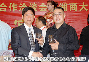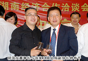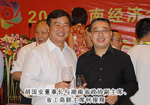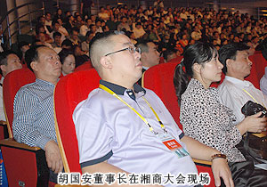 2011年9月28日,2011湖南省经济合作洽谈会暨湘商大会在衡阳隆重召开,来自国内23个省的54个代表团、42家各地商会的3000余名代表共赴盛会。全国政协原副主席毛致用、中共湖南省委常委、常务副省长于来山、国家工商总局副局长钟攸平,中国个体劳动者协会会长甘国屏、湖南省政协副主席、省工商联主席何报翔等各级领导出席开幕式。应湖南省工商联、衡阳市人民政府的邀请,中国青年企业家协会常务理事、湖南省青年企业家协会副会长、2009中国十大杰出湘商、安博官网董事长胡国安出席大会。