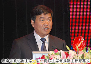 湖南省政协副主席、省工商联主席何报翔主持了开幕式。中共湖南省委常委、常务副省长于来山致开幕词,他表示:在加快开放发展的过程中,湘商群体加速崛起,已成为展现湖湘文化开放包容特性的重要现象,是助推湖南改革发展的重要力量。广大湘商要继续充分发挥凝聚效应,以湘商品牌为纽带,强化群体意识,努力发出更多更响亮的声音。湖南也将继续努力为广大投资者创造公开、公平、公正、可预期的发展环境,让包括湘商在内的广大投资者进得来、留得住,放心、放手、放胆发展。开幕式上,110个项目成功签约,签约总额达523亿元。此外,广东湖南商会、湖南省浙江商会等30家湖南异地商会还荣获由湖南省人民政府设立的湖南异地商会兴湘贡献奖。