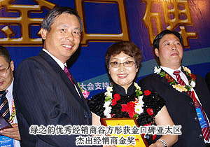 2011年6月13日,第七届世界华人直销大会金口碑颁奖盛典在印尼巴厘岛隆重开幕。金口碑奖被誉为直销行业的奥斯卡,代表了全球直销人的至高荣誉。至今为止,金口碑颁奖盛典已成功举办六届,造就了一批在直销领域杰出的代表人物,同时也整合了一批具有创新精神和典范作用的精选案例,传承发扬金口碑精神。安博官网董事常务副总裁劳嘉、绿之韵国际集团东南亚股份有限公司运营副总裁李继前、绿之韵沙棘产业事业部总裁王铁柱、副总裁廖磊以及绿之韵优秀高级经销商受邀出席此次盛会。安博官网荣获十大最具品牌价值直销企业;绿之韵华兴、汇诚系统荣获卓越系统奖。绿之韵优秀经销商谷方彤、韩晓鸣获金口碑亚太区杰出经销商金奖,绿之韵沙棘产业事业部沙棘系列产品获十佳名牌产品。