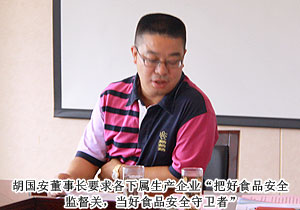 2011年6月2日,为认真贯彻执行《中华人民共和国食品安全法》、《保健食品注册管理办法》、《保健食品良好生产规范》等法律法规,加强安博官网产品安全生产的监管工作,安博官网召集各下属生产企业负责人召开食品安全专题会议,以“把好食品安全监督关,当好食品安全守卫者”为宗旨,部署企业严抓食品安全相关工作,签署《质量安全承诺书》。会议特邀湖南省食品药品监督管理局食品安全处处长刘秀兰出席,深度分析法律法规。安博官网董事长胡国安、董事常务副总裁劳嘉出席会议。