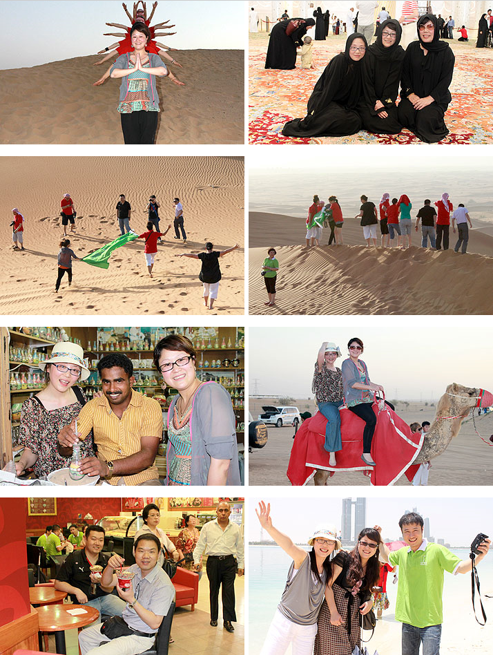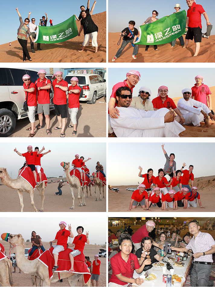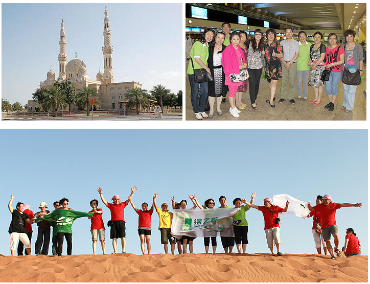 迪拜是奢华的代名词,创造着许多的“世界之最”。20世纪50年代,它还是阿拉伯湾一个朴素的海滨小镇,到了90年代以后,鳞次栉比的摩天大楼在霍尔河畔奇迹般地崛起,成为全世界一个具有神奇吸引力的旅游宝地。2011年5月19日—23日,绿之韵精英首届相约迪拜之旅浪漫演绎。50多名以顽强拼搏精神书写人生奇迹的绿之韵营销伙伴踏上了精彩纷呈的“逐梦之旅”。在漫漫沙漠中骑着骆驼追寻人生梦想,在沙柔水净的海滩上享受阳光的抚摸,在尘埃下的村落听古老的风塔述说爱情神话,在金光耀眼的黄金市场挥洒疯狂购物的快感,在七星级的帆船酒店尽享尊贵服务……这就是迪拜,一半是海洋,一半是沙漠的梦幻之地,一个用财富和奢华堆砌的神话之都。