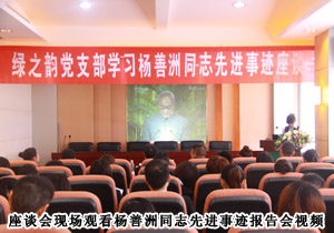 杨善洲同志出生于1927年,原任云南省保山地委书记,2010年10月10日因病逝世。杨善洲同志从事革命工作近40年,曾担任保山地委领导,两袖清风,清廉履职,忘我工作,一心为民,为了兑现自己当初“为当地群众做一点实事不要任何报酬”的承诺,1988年退休后,主动放弃进省城安享晚年的机会,扎根大亮山,义务植树造林22年,建成面积5.6万亩、价值3亿元的林场,且将林场无偿上缴给国家。杨善洲同志是当代焦裕禄精神和雷锋精神的典型代表,他用一生的追求和奉献,诠释了一个共产党员的崇高品质和优良作风。通过学习,绿之韵广大党员、团员深受感动和鼓舞,纷纷表示,杨善洲同志是我们学习的楷模和榜样,我们将大力宣传和弘扬杨善洲同志的先进事迹和崇高品德,爱岗敬业,学以致用,争当模范,为企业的发展贡献全部力量!
