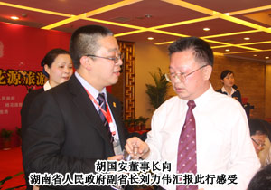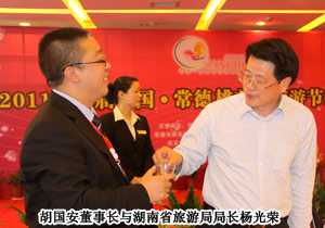 胡国安董事长表示:桃花源旅游节有着深厚的文化底蕴为依托,以花会友,为常德旅游业的发展提升了知名度和影响力。在今后管理好企业发展的同时,进一步贯彻落实“四化两型”战略方针,准确把握经济发展趋势,与湖南省所有优秀的青年企业家一起努力,为促进湖南省经济又好又快的发展不断贡献力量。