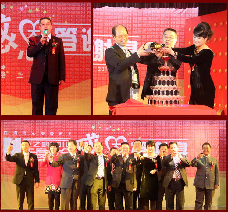 现场活力四射的舞蹈、轻松幽默的魔术、优雅的现场音乐演奏为答谢晚宴营造了愉悦和谐的气氛。董事长胡国安、董事常务副总裁劳嘉、执行总经理龚振共同开启香槟酒,大家共同举杯,许下2011年的美好愿望,树立新的奋斗目标。绿之韵各事业部的加入为绿之韵事业注入了新的血液和力量,绿之韵事业所蕴藏的无穷魅力也正通过我们大家的努力开始绽放出光彩。在这样的答谢晚宴上,绿之韵人用一颗真挚的心来感恩生活;在这样的答谢晚宴上,我们大家其乐融融地享受着家的温暖,分享着家人所取得的骄人佳绩;在这样的答谢晚宴上,绿之韵和谐共处、携手共赢的经营理念突显着绿之韵事业相互信任彼此扶持的家的文化、水的精神。来自祖国大江南北的绿之韵经销商们在此相聚,为我们所有的荣誉而欢呼,为我们所有的付出而喝彩,为我们来年新的目标加油呐喊!