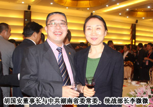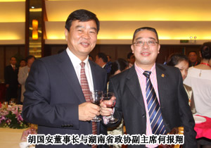 中共湖南省委书记、湖南省人大常委会主任周强、中共湖南省委副书记、湖南省人民政府省长徐守盛、国家工商行政管理总局副局长钟攸平、中国个体劳动者协会会长甘国屏、全国工商联副主席傅军等近50位各级政府领导莅临现场。2009年度中国十大杰出湘商、安博官网董事长胡国安应邀出席,他表示:安博官网在各级政府的关心与支持下,七年时间成长为中西部第一家获牌的直销企业,有责任有义务为湖南省经济发展做出积极贡献。将保持高度的投资热情和敏锐的发展目光,在湘商大会这个蕴含无限机遇的舞台上,加强彼此交流和合作,与天下湘商共话湖南经济发展,打造湘商品牌!