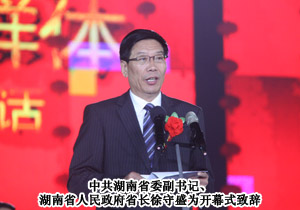 29日晚,第四届湘商大会开幕式及“湘商之歌”主题文艺晚会在常德市体育中心重磅上演,湖南经济电视台、常德电视台新闻频道现场直播,各地湘商与常德市民近10000人现场感受湘军壮大的豪迈与激情。幕式上,全国政协原副主席毛致用、中共湖南省委书记、湖南省人大常委会主任周强、中共湖南省委副书记、湖南省人民政府省长徐守盛共同开启“合作发展之门”并见证项目签约。当晚,广东湖南商会等20家湖南异地商会还荣获由湖南省人民政府设立的湖南异地商会兴湘贡献奖。中共湖南省委副书记、湖南省人民政府省长徐守盛表示,湘商的群体性崛起,已成为助推湖南经济社会发展的重要力量。自2006年来,湘商直接投资和通过湘商为湖南带来的投资达1200亿元,目前湖南的异地商会已达270个。他表示,湖南发展势头强劲,是广大海内外投资者施展拳脚的热土,开放文明的湖南诚邀天下湘商共创美好明天。