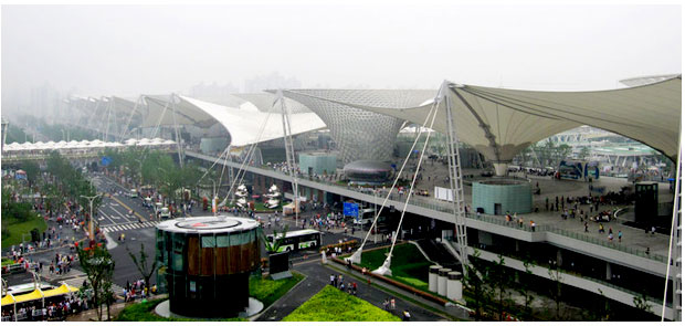 当然,最激动人心的就是属于每一位华夏儿女的中国馆了,一眼望去,一个高大宏伟、大红色的、具有浓郁中国传统建筑风格的展馆呈现在我们眼前。展馆建筑外观以“东方之冠,鼎盛中华,天下粮仓,富庶百姓”为构思主题,表达了中国文化的精神与气质。沿着长龙般的队伍,走进了中国馆。展馆从当代切入,回顾中国三十多年来城市化的进程,凸显三十多年来中国城市化的规模和成就,回溯、探寻中国城市的底蕴和传统,畅想城市发展的未来。充分展示了中国五千年的文化精髓和各个时期特别是改革开放30年来城市建设发展取得的巨大成就,内容十分丰富。