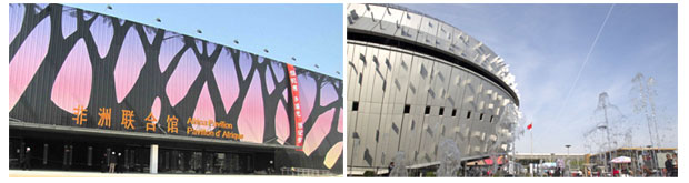 虽然心里早有准备,但到了目的地还是感觉到了震撼,每天几十万人次的参观人数用人山人海来形容现场一点也不为过,一场大雨给了兴致勃勃的绿之韵人一个下马威,但这并不能影响到大家参观的兴致。举目眺望,整个园区宽阔浩大,展馆林立,建筑风格各异,十分壮观,令人目不暇接。从C片区进入,沿着世博轴看各个国家场馆的远景,形形色色的场馆相拥相簇,周围绿色植物也连成一片,感觉整个区域像一幅铺展的油画。英国馆的外观最具创意。一眼望去,一个酷似 “刺猬”的建筑物非常激发人们的想象力,令人惊喜。其外墙由约6万根透明的亚克力光纤“触须”组成,随风摇曳,这意味着每个人、每分钟都会看到不一样的英国馆。白天,每根长达7.5米的触须会传导光线,提供展馆的内部照明,晚上,内置的彩色光源将用作外部照亮整个建筑。美国馆分四个部分,前三个都是视频,最后一部分是展示馆。美国人果然时刻都在宣扬美国精神:自由、创新等等。巴西激情的绿色混合着大屏幕的足球比赛视频,撩动人心。丹麦馆环形的自行车道上游客骑着自行车到达顶端,带来别样的成就感,底端安徒生童话里的小美人鱼远道而来,露给观者美丽、令人无限遐想的背影,营造出童话般的氛围。意大利的展馆将艺术与激情完美结合起来,随着参观者的脚步,意大利歌剧、服饰,跑车、红酒以及人垂涎欲滴的通心粉一一呈现,叹为观止。非洲联合馆是由许多联在一起的非洲国家小馆区域共同组成的,馆内充满着异国情调,木雕石像神态各异充满想象,现场有手工艺人展示表演非洲鼓,现场泥塑与木雕等等。瑞士馆,外围被一层巨大的随风发光的互动型智能红色帷幕包裹,这层帷幕可以与周围的光能感应,呈现动态闪光的视觉效果。主体结构由两个承重的大小圆柱组成,观光缆车将其连结成一个整体,是一个巨大的钢结构建筑。瑞士馆的想象力真够“大胆”:在房间里乘坐阿尔卑斯山上的缆车,徜徉在金色的蒲公英海洋中,渐渐升至馆顶,坐看云卷云舒……这或许是在城市里感受自然的最好方式。