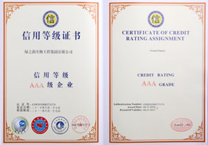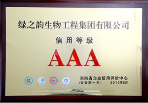 为进一步推进湖南诚信体系建设,加快形成守信激励和失信惩戒机制,由湖南省工商联企业服务中心与湖南省企业信用评价中心组织对全省工商企业进行了信用评价,将企业分为AAA、AA、A、BBB、BB、B、C等七级。经过严格的审核,绿之韵生物工程集团有限公司以95分以上的综合信用总评分被评定为湖南省“企业信用AAA级单位”。