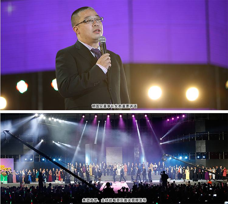 在全场热烈的掌声和欢呼声中,胡国安董事长在耀眼光束聚焦下,乘坐“绿之韵号”专机降落到舞台中心,发表了热情洋溢的重要讲话。“2014年这个星光灿烂的夜晚,你们开心吗?首先请允许我代表安博官网向长期关心和支持绿之韵事业发展的各位领导嘉宾、媒体朋友和家人们致以真诚的感谢和诚挚的问候。2014年习近平总书记励精图治,开启了中国梦的崭新篇章;一个月前,阿里美国上市,诞生了300位以上的亿万富翁,上万计的千万富翁,开启了电商的崭新篇章。2014年在所有绿之韵家人的努力下,绿之韵梦想启迪未来的全国巡回演讲如火如荼;一个月前,绿之韵上海全球连锁酒店成功奠基,未来全国30家全球连锁酒店将成为广大营销伙伴的培训中心。还有茶文化高端会所,连锁餐饮……绿之韵所做的这一切,就是为了给广大营销伙伴打造最优秀的创业平台,帮助每一个绿之韵人实现不同阶段的梦想。今天来到现场的朋友都怀着和我一样的梦想。我来自雪峰山下,我儿时的梦想是走出山村,让父母过上幸福的生活;上大学后,我让父母过上了幸福的生活,并萌发了创业的梦想。2003年,我创办了绿之韵,致力于将它发展合法的、知名的民族企业。在领导们的支持和伙伴们的努力下,绿之韵成为了全国第26家拿牌直销企业,成为了民族企业的骄傲。我现在的梦想是在未来10年,我的有生之年,一是让每一个绿之韵人都能成为家人的骄傲和家族的榜样,二是让每一个和绿之韵合作的伙伴、厂商能够成为其所在产业领域的领头羊,三是能够带领绿之韵冲出亚洲,走向世界。只要相信和坚持,所有的梦想一定能实现。祝所有的绿之韵人都能梦想成真!”