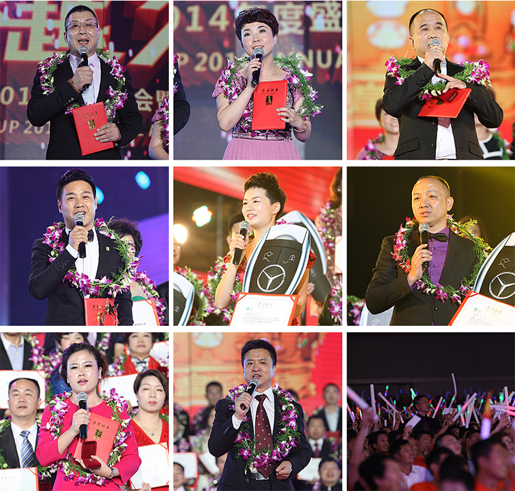 绿之韵2014新晋级皇冠一星奖、二星奖、三星奖:蒲晟犀、鲍文生、陈建军、陈丽辉、陈立群、陈香元、曹瑛煌、陈自创、邓盛等人获得至尊皇冠一星奖。陈平、范林莉、高元明(童东群)夫妇、贺红博(陈虹萱)夫妇、贾国军、李长宇(丁翠芳)夫妇、刘凤军(欧建梅)夫妇等人获得至尊皇冠二星奖;李政沅,周书明苏龙辉伉俪荣膺至尊皇冠三星奖。集团副总裁、全球营销中心执行总经理谢尚纬,安博官网全球营销中心(中国区)副总经理刘维利,绿之韵全球战略委刘尚线,绿之韵全球战略委、善德国际总裁吕雷钧等分别颁授奖项,并致以祝贺。