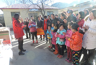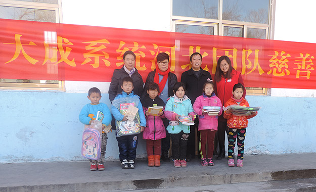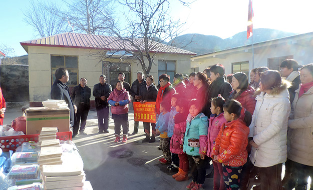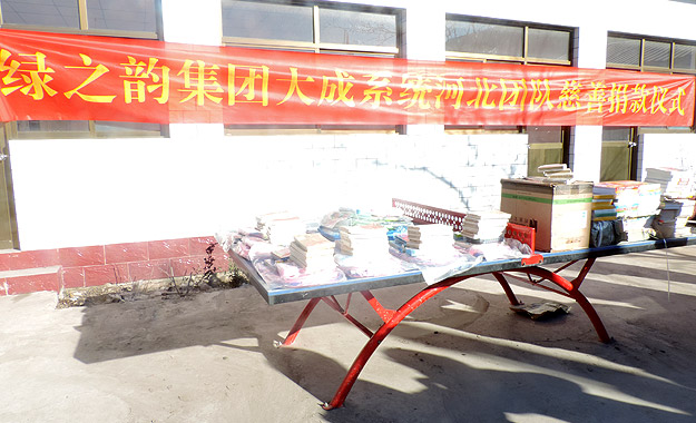 2015年12月4日,在绿之韵大成河北区团队领导人张环萍女士的带领下,30多位绿之韵志愿者与灵寿县民政局相关领导、德正社工志愿者们一起集结灵寿县陈庄镇南沟村小学并捐赠书籍、纸笔等物及善款35000元,为留守儿童加油,为爱助力,构筑起了一道健康、美丽、快乐的爱心风景线。