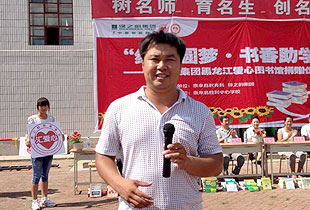 胜利乡是泰来县比较有名的贫困乡,胜利中心学校更是在1998年的洪水中遭受了重创,学生们渴望读到好的课外读物,渴望掌握更多教科书以外的知识,但是在此之前对于这里的孩子来说只能是奢望。今天,孩子们终于能够圆了拥有一个图书馆的梦想,绿之韵的叔叔阿姨们给他们带来了梦寐以求的丰富图书。从此,孩子们便可以在整洁的流动图书馆阅读心爱的课外书籍。