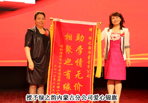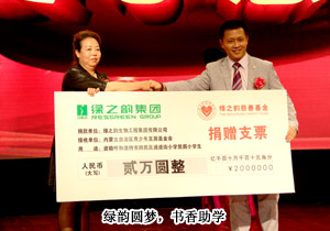 一直以来,绿之韵内蒙古的爱心经销商们总是活跃在各项公益慈善中,将回馈社会、撒播爱心作为永恒不变的主题。庆典现场,王连坤、郝建兵、张闻英、张闻华、张弘菲、刘美成、周淑梅、大高娃、闫素琴、乔桂英、丁文慧、秦慧、黄丽、杨玉莲14名爱心经销商为呼和浩特市回民区通道街小学捐赠善款两万元,为孩子们建立流动图书馆,用爱托起孩子们茁壮成长的蓝天。副总经理何健为这14名爱心代表颁发了“2012年度绿之韵爱心慈善大使捐款荣誉证书”,可爱的孩子们也送上了精心准备的诗歌朗诵和舞蹈表演。爱心代表王连坤表示:很高兴能为这次助学活动尽一份力,同时也希望更多的人加入到慈善事业中,将承载着爱心的“接力棒”永远传递下去。
