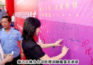受邀参与此次活动的有包括绿之韵在内的12家直销、及已向商务部提交申请的准直销企业。长春市工商局领导充分肯定了这些企业在促进经济发展中起到的积极作用,也表示会大力支持企业的规范发展。各受邀企业代表也纷纷表示,将坚持守法经营,并积极推动地方经济发展。活动最后,与会的领导、企业代表、各企业从业人员及社会群众,在“打击传销 规范直销”的签名版上签名,吉林刘公司经理刘晓桅也代表安博官网许下了“坚持规范经营”的庄重承诺。