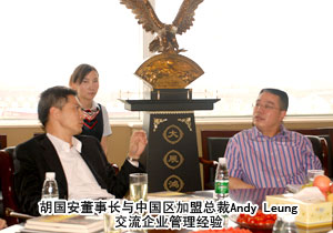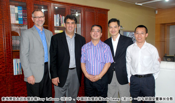 考察团一行先后参观了湖南绿之韵迪博制药有限公司及绿之韵总部办公大楼,整洁的生产线、舒适的办公环境以及独特的企业文化得到了国际友人的赞誉。座谈会上,麦当劳亚太区加盟总裁Tony LaRocco向胡国安董事长详细咨询了绿之韵整合分销经营模式的现状和优势,并研读了绿之韵加盟专卖店管理手册,与胡国安董事长针对麦当劳在湖南地区未来的发展和管理方向展开讨论。座谈会在友好、热情的氛围中进行,胡国安董事长表示:麦当劳在全球的飞速发展有目共睹,企业之间互相学习,借鉴经验,对企业的发展大有裨益。安博官网今后将密切与知名企业进行互访,在不断学习中提升绿之韵的品牌竞争力。