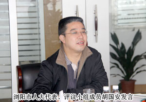2010年4月15日,浏阳市人大代表评议小组一行10人调研安博官网,并在绿之韵总部五楼会议室召开评议市直部门工作部署会议。浏阳市人大代表胡国安与10名小组成员共同参与。