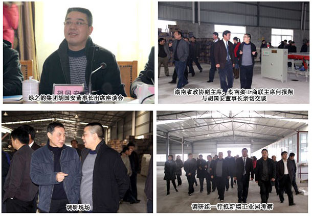 2010年1月4日,在湖南省政协副主席、湖南省工商联主席何报翔、省工商联副主席、党组成员周柏良的带领下,省政协委员、省工商联常委、安博官网董事长胡国安及湖南省部分知名民营企业家赴湖南省岳阳县就招商引资工作进行实地考察。