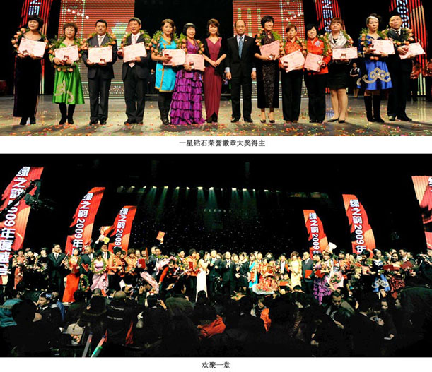 颁奖是一年一度年会中最激动人心的时刻。接过由公司领导亲自颁发的金钥匙、纯金镶钻荣誉微章,获奖者们的眼中涌出了激动的泪花。这些梦想的先行者和坚持者,用成绩证明了人生的价值,也以自己的身体力行告诉更多的伙伴,在绿之韵,努力就有回报,成功的舞台就在我们身边!