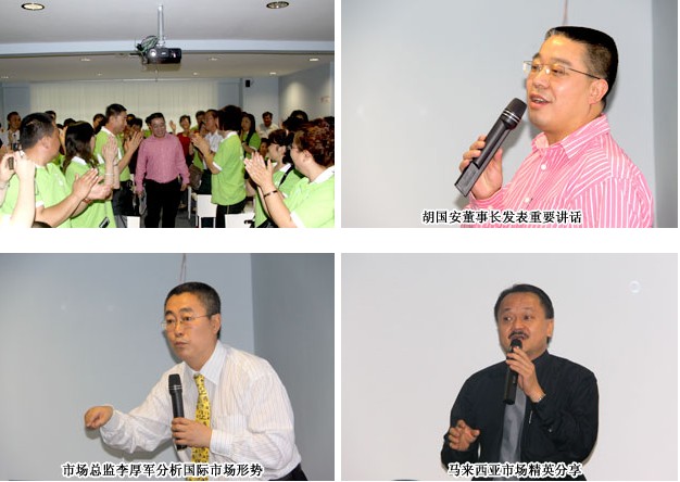 会议期间,安博官网董事长胡国安在研讨会上发表重要讲话,阐明公司进军国际市场的重要意义和目的,指出随着绿之韵国际业务的全面启动,公司将在继续完善国内业务政策的同时,携手事业伙伴开拓更加广阔的国际市场,在“稳定国内”的基础上,推进绿之韵事业“国际化”进程。胡总前瞻性的国际战略布局,清晰的市场发展思路,令大家振奋不已,与会代表一致表示配合公司努力开拓国际市场。
