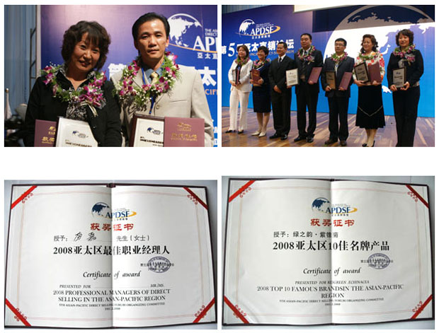 在此次论坛上,安博官网银杏螺旋藻、玉感紫锥菊被评为“2008亚太区10佳名牌产品”。安博官网董事、常务副总经理劳嘉获“2008亚太区最佳职业经理人”称号。安博官网优秀分销商代表徐华荣获“ 2008亚太区十佳善行典范经销商”、张吉福荣获“2008亚太区十佳金牌培训师”、刘国立荣获“ 2008 亚太区50位杰出经销商”、黄淑青荣获“2008 亚太区50位杰出经销商 ”、史朋荣获“ 2008 亚太区善行典范经销商”荣誉称号。