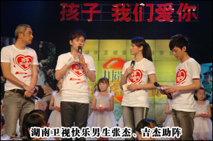 这台“孩子,我们爱你”抗震救灾希望工程专题晚会将于5月23日晚21点30分在湖南卫视播出。