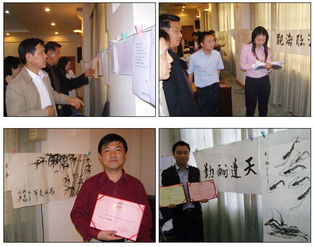 2008年4月30日,由共青团浏阳市工业园委员会组织开展的“建园10周年”书法、绘画比赛在园区举行。举办此次活动的意义是为了迎接“五四青年节”的到来,展示工业园建园十年来各方面的成就,歌颂在荒山野岭艰苦卓绝、敢为人先的创业精神,抒发建设一流生物产业基地的豪情壮志。园区有二十多家企业单位踊跃参加,安博官网企划部的员工彭兴、王坚和财务部的刘涛三人代表公司参加了比赛,并取得了优异的成绩:彭兴荣获书法比赛一等奖、绘画二等奖;王坚荣获绘画比赛一等奖;刘涛荣获书法比赛二等奖,他们为安博官网争光添彩,展现了绿之韵年青人的朝气和才气!