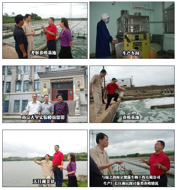 在2007绿之韵服务质量年,集团公司高层领导纷纷走访全国各地,亲临各分公司工厂和生产基地视察产品质量和生产运营情况。2007年7月1-3日,胡国安董事长又亲自带领集团公司总部部份工作人员及经销商咨询管理委员会会长浦守仁、王爱丽夫妇来到南京开源微藻生物工程有限公司,在汪燕民厂长的陪同下,胡国安董事长一行对螺旋藻养殖基地、生产车间进行了实地考察。对于生产厂家,胡总提出了殷切希望,并强调:"一定要在保障货源的情况下严把产品的质量关"。
