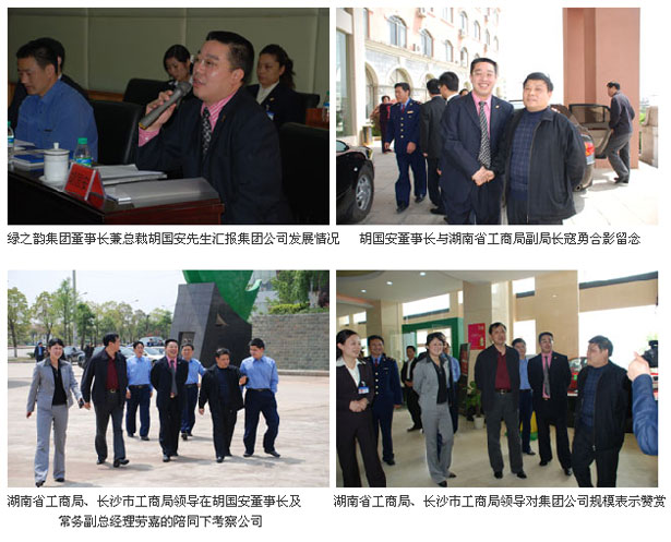 董事长兼总裁胡国安先生首先对省、市工商局领导对绿之韵的大力支持表示衷心的感谢,随后就集团公司目前发展情况给省、市工商局领导作了详细汇报,并得到了与会领导的重视。随后在胡国安董事长以及浏阳市工商联(总商会)副会长、安博官网董事常务副总经理劳嘉女士的陪同下,省市工商局领导参观了集团公司办公大楼、培训中心等地。