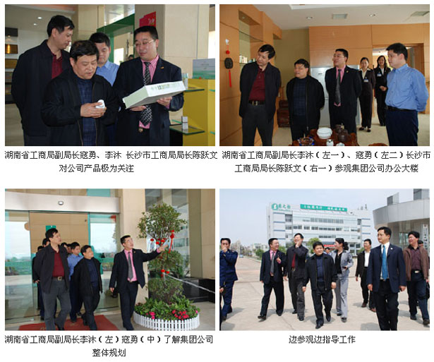 2007年4月11日,湖南省工商局副局长寇勇、李沐,长沙市工商局局长陈跃文等带领省、市工商局市场处、外资处、商标广告监督管理处、注册局等40余名领导深入湖南浏阳生物医药园,对公司进行了调研考察。省、市工商局调研组一行首先在浏阳生物医药园管委会政务厅听取了浏阳工商局、管委会领导以及安博官网董事长兼总裁胡国安先生的工作汇报。