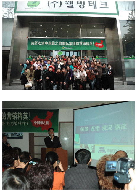 韩国“Wellbeingtech”公司从事直销业已有三年时间,目前拥有四百多个产品,覆盖了生活日用的各个方面,深受韩国人的喜爱。在这里,我们不仅感受到韩国同行业者对绿之韵的热烈欢迎,而且,也看到韩国直销行业一派和谐而充满朝气的忙碌景象。年轻化的销售人员或是围桌而坐认真的沟通交流,或是齐聚一起坐在小会议室里聚精会神地听着讲师授课。一张张年轻的面容流露出求知若渴的神情,让我们以为走进了某所大学的教室。韩国人民对直销事业的热爱和认可度可见一斑。