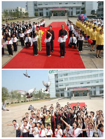 金秋十月,繁华似锦,神州大地,普天同庆。我们满怀激情的迎来了伟大祖国57周年华诞。9月30日,绿之韵国际集团国内事业总部举行了一场隆重的升国旗仪式,由绿之韵国内事业总部的全体员工及绿之韵浏阳老屋希望小学的学生代表参加。当庄严的国歌在耳边奏响,无数热切的目光注视着五星红旗冉冉升起,鲜艳的五星红旗高高飘扬在蓝天白云下的时候,每个人都肃然起敬。一种骄傲和自豪的感觉在心中油然而生。随后,绿之韵公司的司旗伴随着激情高亢的绿之韵之歌也升上了天空,迎风招展。在升旗仪式结束后,绿之韵国际集团领导、员工和绿之韵浏阳老屋希望小学的孩子们站在国旗下齐声祝福祖国“繁荣昌盛,和平统一”,共同放飞和平鸽和彩色气球。