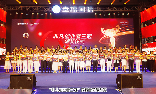 2020年,一场突如其来的新冠疫情打乱了所有人的生活节奏。在这个特殊的时期里,正常的工作与生活都被按下“暂停键”,但幸福代言人们却没有停止前进的脚步,他们传递健康、努力拼搏,他们憧憬幸福、不懈奋斗。大会现场,200余名“非凡创业者”荣誉获奖精英站上舞台,享受属于他们的荣耀加冕与热烈掌声。