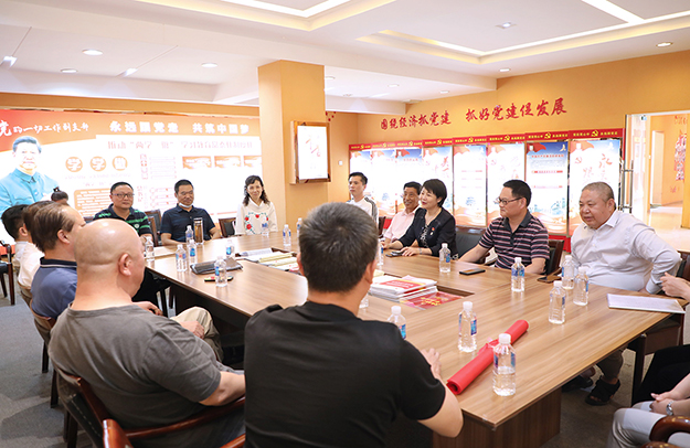 座谈会上,党委书记刘云就企业非公党建情况进行了简要介绍。绿之韵自2006年成立党支部,2013年获批成立党总支,2016年8月获批成立党委以来始终将非公党建工作置于发展战略高度,坚持构建以集团党组织为核心,以集团工会、公益基金会为主体,以三色(红色、金色、绿色)建设为策略,注重红色基因塑造的新时代非公党建新生态,实施“指导式”“责任式”“温情式”管理,并在全行业内创建了第一家党建文化教育基地,形成了具有绿之韵特色的非公党建工作品牌。